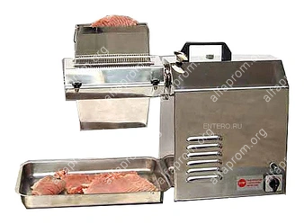 В мясном цехе используется широкий спектр пищевого технологического оборудования. Это могут быть машины для обвалки и жиловки мяса, тендерайзеры для улучшения структуры мяса птицы, рыбы и говядины, слайсеры для точной нарезки, куттеры для приготовления полуфабрикатов и паштета, фаршемешалки для получения однородной консистенции фарша (важен объем чаши), льдогенераторы, установки для упаковки, шнековые прессы, массажеры для мяса и другое оборудование.