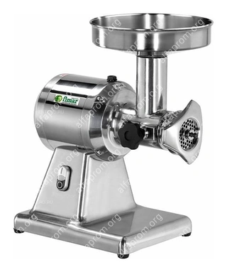 Мясорубка FIMAR 12/S предназначена для измельчения мяса и рыбы на фарш, повторного измельчения котлетной массы и набивки колбас на предприятиях общественного питания и торговли. Модель оснащена несъемным режущим узлом, зубчатым редуктором в масляной ванне. Внутренние детали съемные, что удобно для их мытья в посудомоечной машине. Корпус выполнен из полированного алюминия, самозатачивающийся нож, решетка, бункер и съемный режущий узел - из нержавеющей стали.