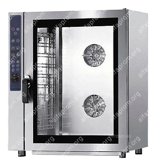 Пароконвектомат PIRON DG940 предназначен для обжаривания, приготовления на пару, бланширования, запекания и других видов тепловой обработки продуктов на предприятиях общественного питания и торговли. Камера изготовлена из нержавеющей стали AISI 304.