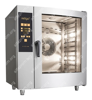Пароконвектомат Retigo O1011BC VISION II серии Orange Vision II предназначен для обжаривания, приготовления на пару, бланширования, запекания и других видов тепловой обработки продуктов на фабриках-кухнях, предприятиях общественного питания и торговли. Оборудование заменяет сразу несколько видов приборов: плиту, конвекционную печь, жарочный шкаф, духовку, опрокидывающуюся сковороду, пищеварочный котел и фритюрницу. Приготовленные в пароконвектомате блюда сохраняют все полезные вещества. Модель оснащена цифровым дисплеем.