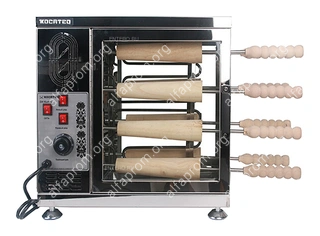 Настольная печь для трдельников Kocateq DHKurtos используется на предприятиях общественного питания и торговли, в пекарнях и кондитерских для выпечки до 8 венгерских калачей. Модель оснащена панелью управления, термостатом для автоматического поддержания температуры. Корпус выполнен из нержавеющей стали AISI 201, ножки - из металла, с пятками - из пластика.