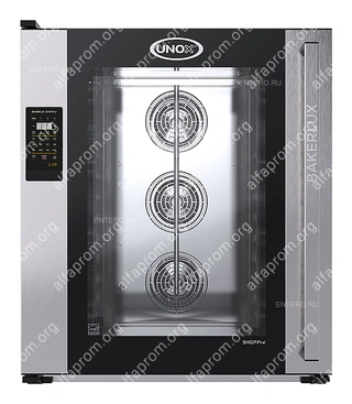 Печь конвекционная UNOX XEFT-10EU-ELRV-DR серии BakerLux Shop.Pro предназначена для приготовления различных блюд, выпечки хлебобулочных и кондитерских изделий на предприятиях общественного питания и торговли, в пекарнях и кондитерских. Модель оснащена электронным управлением, светодиодной подсветкой и L-образными направляющими. Легко открывающееся внутреннее стекло облегчают чистку и обеспечивает максимальную гигиену. Камера выполнена из нержавеющей стали, направляющие - из хромированной стали.