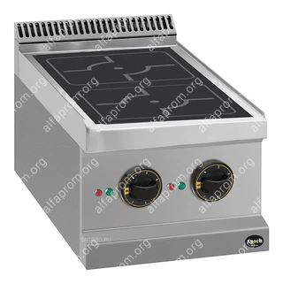 Индукционная плита Apach APRI-47T 700-й серии предназначена для приготовления различных блюд из мяса, птицы, рыбы и овощей в наплитной посуде на предприятиях общественного питания и торговли. Модель с герметично вмонтированными конфорками и 6 температурными режимами оснащена электромеханической панелью управления с 2 терморегуляторами и 4 световыми индикаторами. Корпус, рабочая поверхность, панель управления и вытяжная решетка выполнены из нержавеющей стали AISI 304, боковые и задняя панели - из нержавеющей стали AISI 430.