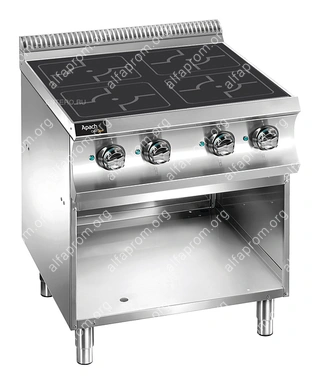 Индукционная плита Apach Chef Line GLRI77OS 700-й серии предназначена для приготовления различных блюд из мяса, птицы, рыбы и овощей в наплитной посуде на предприятиях общественного питания и торговли. Модель оснащена электромеханической панелью управления с 4 терморегуляторами и 4 световыми индикаторами и регулируемыми по высоте ножками. Корпус выполнен из нержавеющей стали AISI 304, рабочая поверхность - из стали толщиной 1,5 мм, ножки - из нержавеющей стали.
