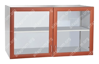 Детали полки выполнены из нержавеющей стали, дверцы из МДФ со стеклом.