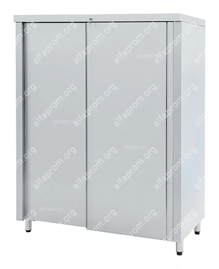 Кухонный шкаф ATESY ШЗК-С-1200.600-02-К серии Стандарт используется на предприятиях общественного питания и торговли для хранения столовой и кухонной посуды и инвентаря, а также продуктов питания, не требующих особых условий хранения. Модель оснащена дверями-купе с замком. Дно и задняя стенка выполнены из оцинкованной стали, остальные детали - из нержавеющей стали AISI 430 толщиной 0,8 мм.
