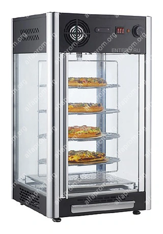 Тепловая витрина Airhot HW-108 предназначена для демонстрации, подогрева и кратковременного хранения пиццы, булочек, пирогов и различных закусок на предприятиях общественного питания и торговли. Модель оснащена функцией поддержания влажности, терморегулятором, индикатором работы, подсветкой и 4 вращающимися полками. Корпус выполнен из окрашенной стали.